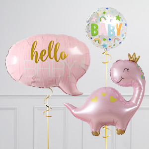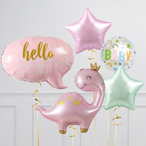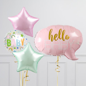 Upgrade your Hello Baby balloon by adding a matching 18" Baby round balloon, 20" star balloons, and supersize with a 42" Welcome to the World balloon.