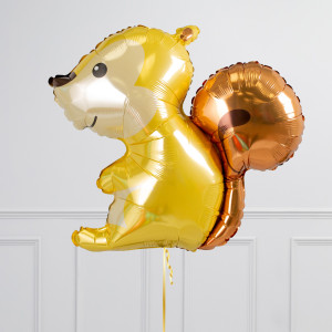 A helium Autumn Squirrel balloon-in-a-box arriving inflated via the post! The perfect autumnal gift or woodland themed party decoration. You can order just the Squirrel balloon supershape or go all the way up to the full package with 15 x pearl sands mini balloons and 3 coordinating heart foil balloons.