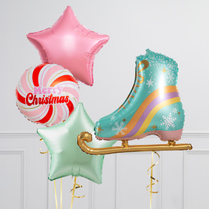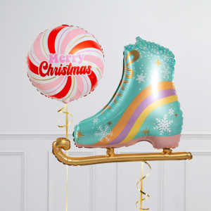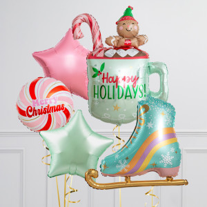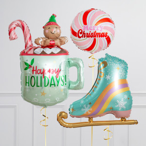 Upgrade your winter sports balloon by adding a matching 18" Merry Christmas Candy Swirl circle balloon, 20" star balloons, and supersize with a 31" Happy Holidays Hot Chocolate balloon.