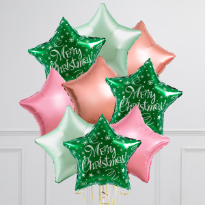 Upgrade your single 20" Merry Christmas green star balloon by adding 20" star balloons to make a bunch of 3, 6, or 9 balloons in our Christmas Candyland colourway.