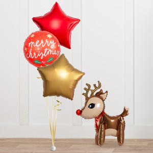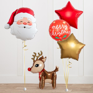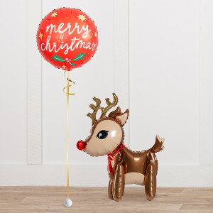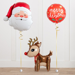 Upgrade your Standing Reindeer balloon by adding a matching 18" Merry Christmas circle balloon, 20" star balloons, and supersize with a 23" Santa Head balloon.