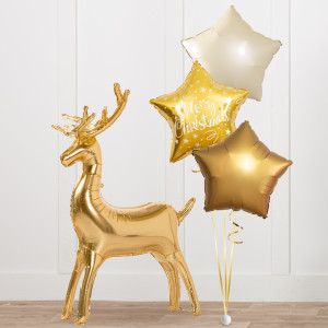 Christmas Sleigh Bells Gold Reindeer Balloon Package