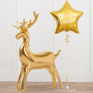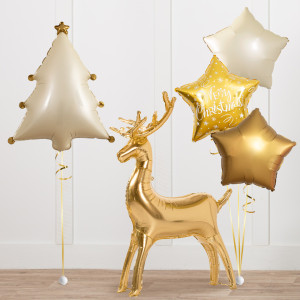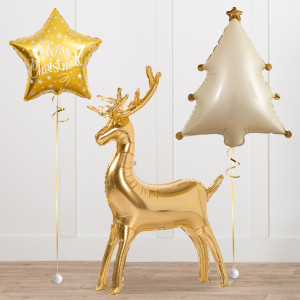 your reindeer balloon by adding a matching 20" Gold Merry Christmas star balloon, 20" star balloons, and supersize with a 27" cream Christmas Tree balloon.