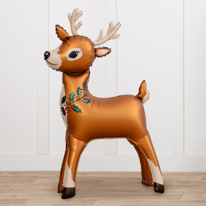An air-inflated 41" Standing Reindeer balloon on ribbon and a weight