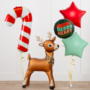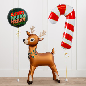 Upgrade your Christmas Reindeer balloon by adding a matching 18" Merry Christmas circle balloon, 20" star balloons, and supersize with a 32" Red & White Candy Cane balloon.