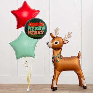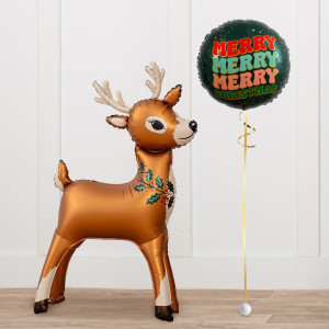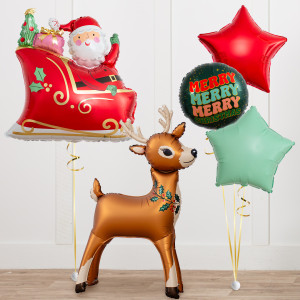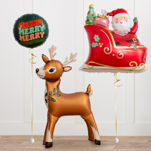 Upgrade your Christmas Reindeer balloon by adding a matching 18" Merry Christmas circle balloon, 20" star balloons, and supersize with a 27" Santa's Sleigh balloon.