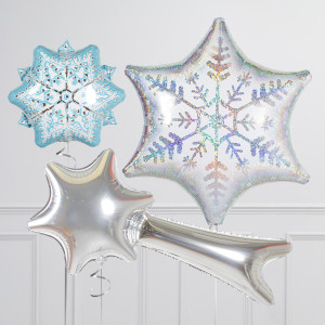 Upgrade your shooting star balloon by adding a matching 20" snowflake balloon, 20" star balloons, and supersize with a 36" snowflake balloon.