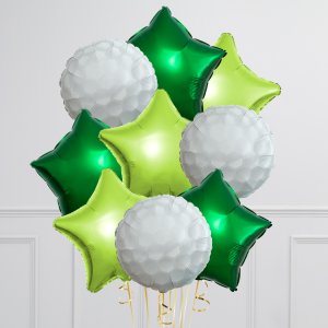 Featuring a mix of golf balls, happy birthday bursts and green star balloons, our Golf Ball star balloon bunch will be the perfect addition to your celebrations.