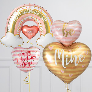Upgrade your Be Mine balloon by adding a 18" Happy Valentine's Day heart balloon, 18" heart balloons, and supersize with a 29" Happy Valentine's Day Rainbow balloon.