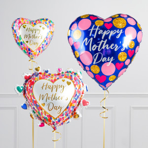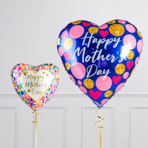 Upgrade your Happy Mother's Day heart balloon by adding a matching 18" Happy Mother's Day heart balloon, 18" heart balloons, and supersize with a 34" Happy Mother's Day heart balloon.