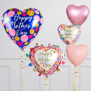Mother's Day Confetti Sparkles Heart Inflated Balloon Bunch
