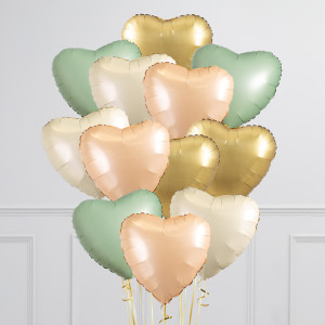 Sage Green & Blush Hearts Inflated Foil Balloon Bunch