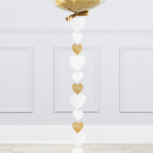 A helium-inflated 20" Gold Confetti bubble balloon on a tail and a weight in your design of choice.