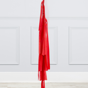 A helium-inflated 24" Loved Up Cherry Crush bubble balloon filled with mini 5" balloons in baby pink, red and deep red on a tail and a weight in your design of choice.