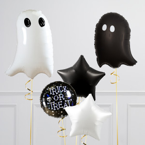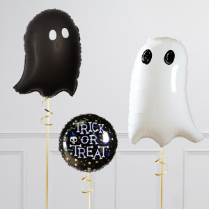 Upgrade your Ghost balloon by adding a matching 18" Trick or Treat circle balloon, 20" star balloons, and supersize with a 22" Lil Dark Ghost balloon.