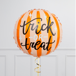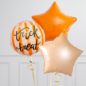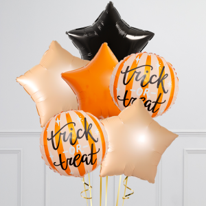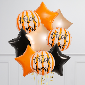 Upgrade your single 18" Trick or Treat Pastel Stripe circle balloon by adding 20" star balloons to make a bunch of 3, 6, or 9 balloons in our Hallowene Pumpkin Patch colourway.