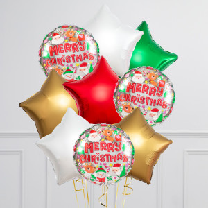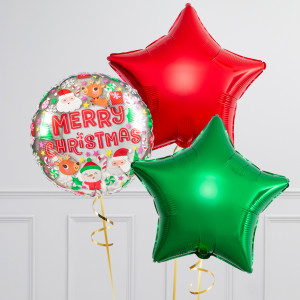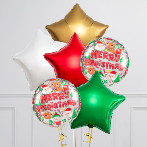 Christmas Characters Red Stars Inflated Foil Balloon Bunch