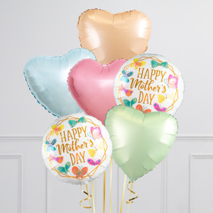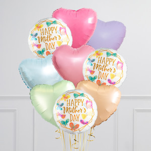 Pastel Butterfly Happy Mother's Day Hearts Inflated Foil Balloon Bunch