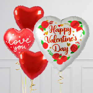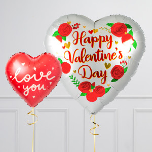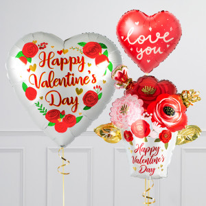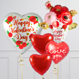 Upgrade your Rose Heart balloon by adding a matching 18" Love You heart balloon, 18" heart balloons, and supersize with a 26" Flower Bouquet balloon.