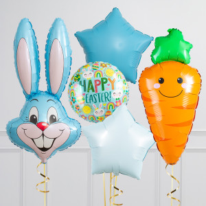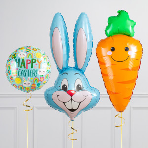 Upgrade your Bunny balloon by adding a matching 18" Happy Easter round balloon, 20" star balloons, and supersize with a 31" Carrot balloon.