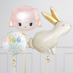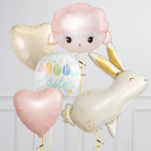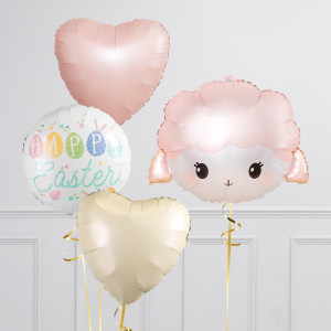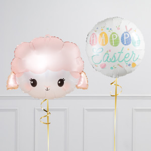 Upgrade your Lamb balloon by adding an 18" Pastel Happy Easter round balloon, 18" heart balloons, and supersize with a 28" Bunny Rabbit balloon.