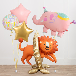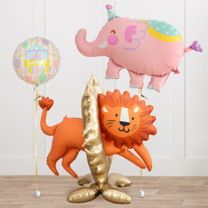 Upgrade your Lion balloon by adding a matching 18" Happy Birthday Circle balloon, 20" Star balloons, and supersize with a 39" Elephant balloon.