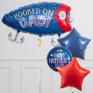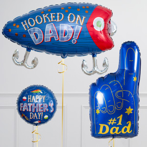 Upgrade your hooked on dad balloon by adding a matching 18" Happy Father's Day circle balloon, 18" Star balloons, and supersize with a 32" Number 1 Dad balloon.